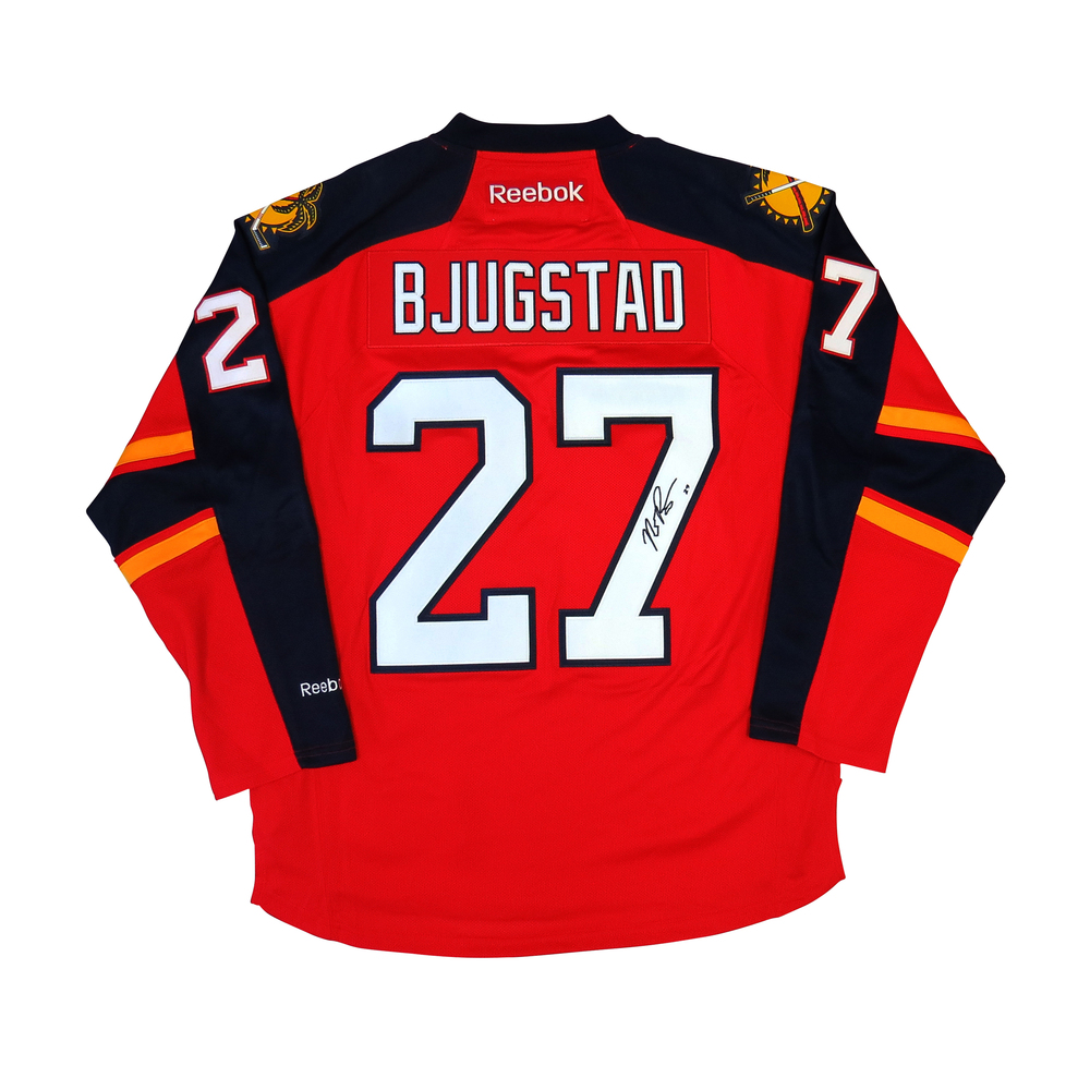 Nick bjugstad jersey Clearance, Nick Bjugstad #27 PLAYER KITZ Signature Series Premier Replica Stitched Signature Florida Clearance