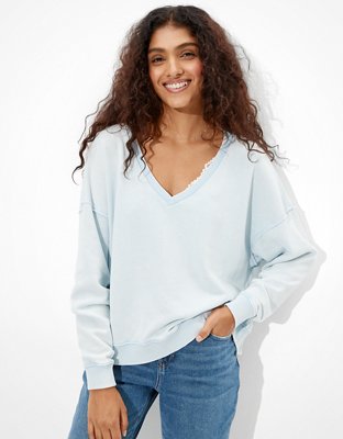 Women's v neck sweatshirt Clearance, AE Fleece V-Neck Sweatshirt Clearance
