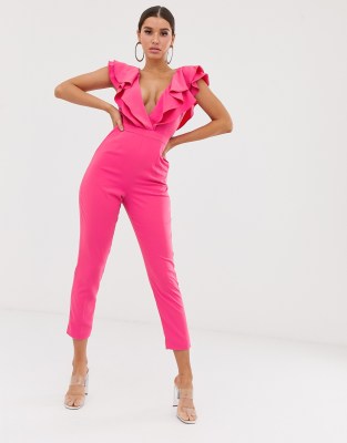 Pink wrap jumpsuit Clearance, Lavish Alice ruffle wrap jumpsuit in Clearance
