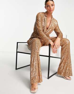 Rose gold womens suit Clearance, pink Gold velvet Pant Suits two piece Clearance
