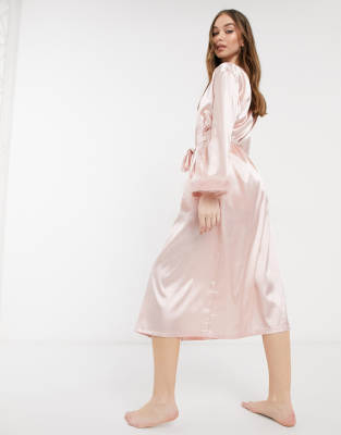 - Silk dressing gown with feather trim shop