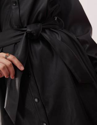 Hemdblusenkleid kunstleder Clearance, Hemdblusenkleid aus Kunstleder, Schwarz --24% Clearance