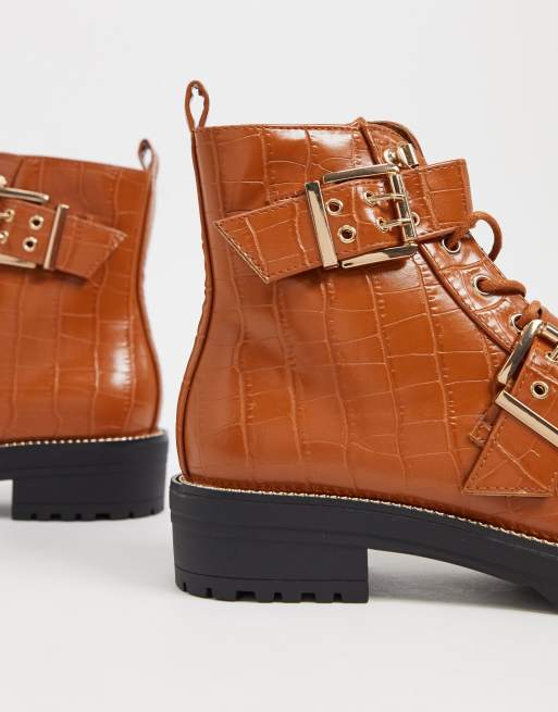 Asos aubrey boots Clearance, ASOS DESIGN Wide Fit Aubrey lace up hiker boots in tan croc | ASOS Clearance