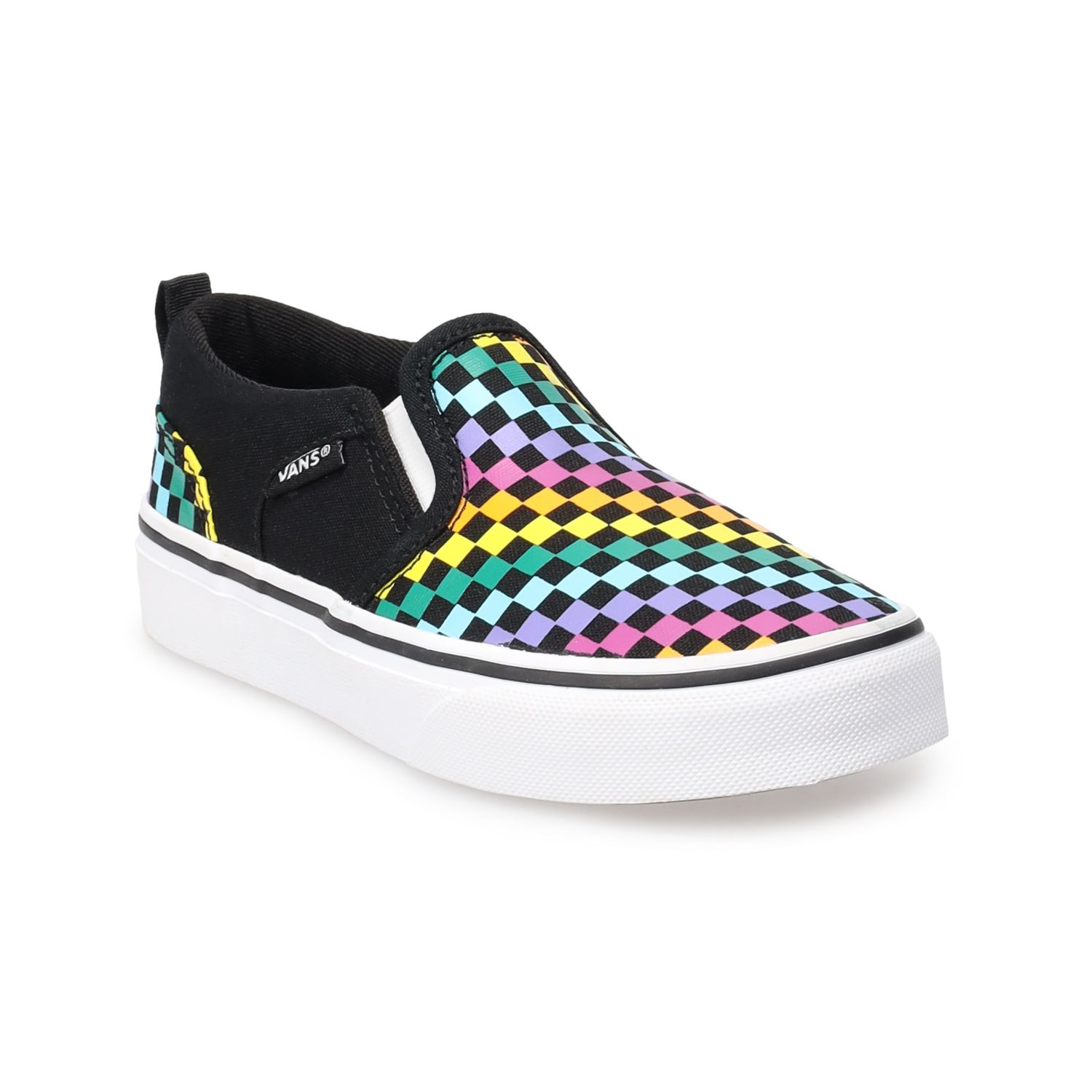 - Rainbow checkered slip ons sale