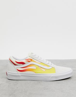 White vans with flames Clearance, Vans Old Skool Flame sneakers in white Clearance