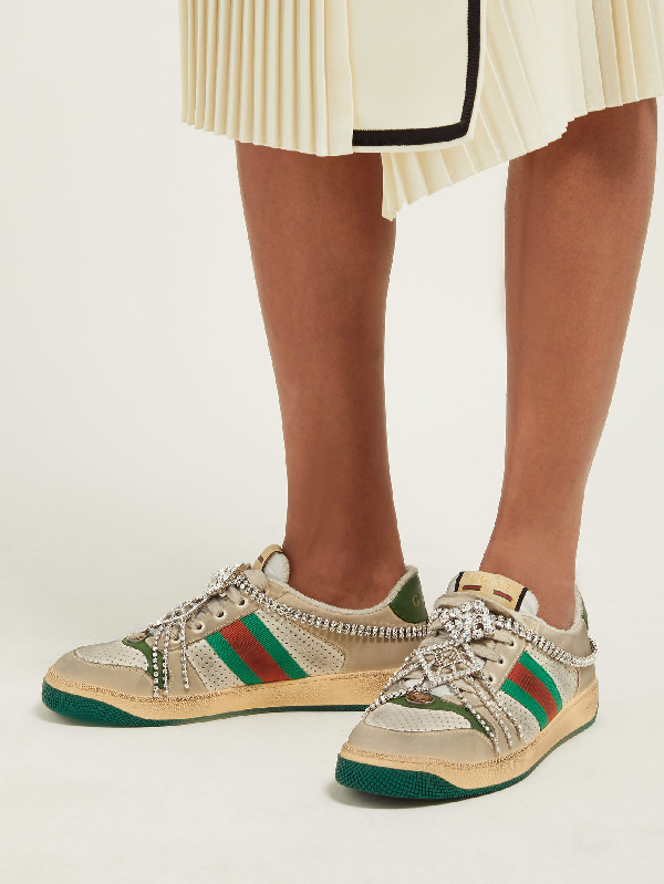 Gucci women's screener sneaker with crystals Clearance, Gucci Screener Distressed Sneakers with Clearance