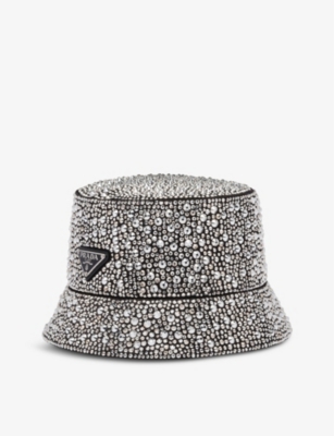 Bedazzled bucket hat Clearance, Crystal-embellished silk bucket hat Clearance