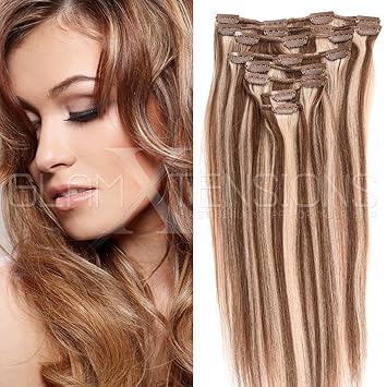 Echthaar extensions gunstig Clearance, Clip in Extensions Echthaar 8 Tressen günstig Haarverlängerung Clearance