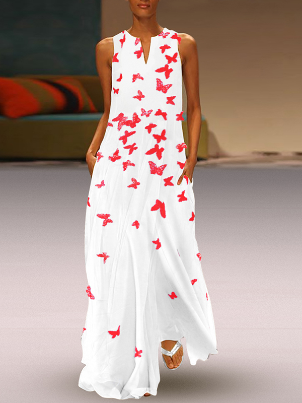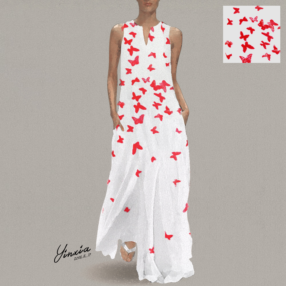 Butterfly printed maxi shift dress Clearance, Chinese Butterfly Printed Maxi Shift Clearance