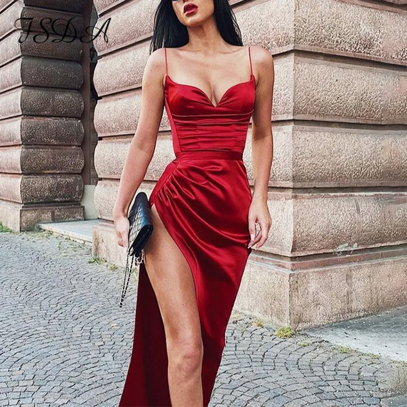 - Cheap Satin midi dress with split