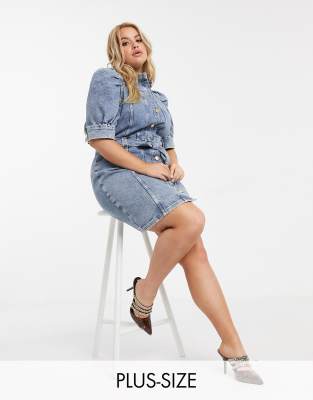 Asos plus size denim dress Clearance, River Island Plus puff sleeve denim Clearance