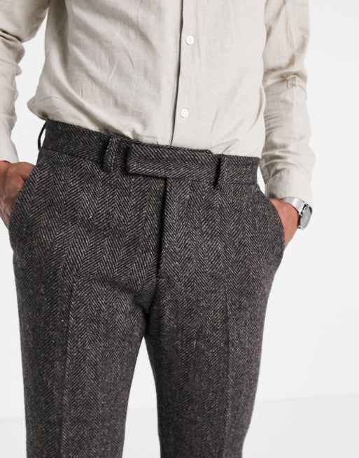 Asos herringbone trousers Clearance, ASOS DESIGN harris tweed 100% wool slim suit trousers in brown herringbone | ASOS Clearance