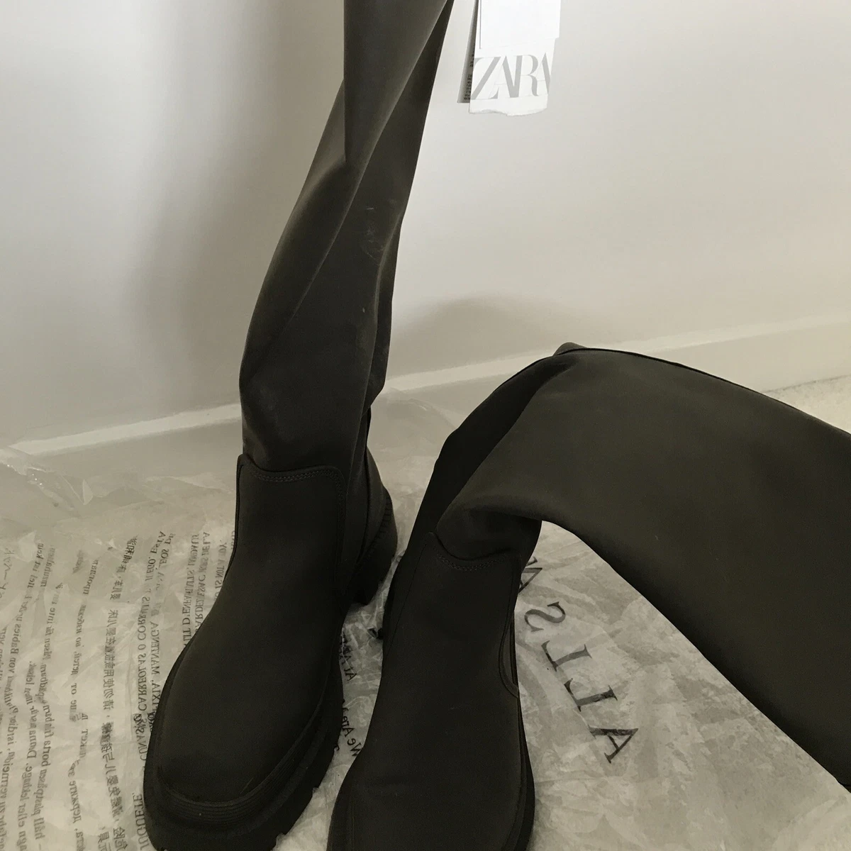 Zara wellies khaki Clearance, ZARA RUBBERISED BLOGGER FAVOURITE KHAKI BOOTS 40/7 | eBay Clearance