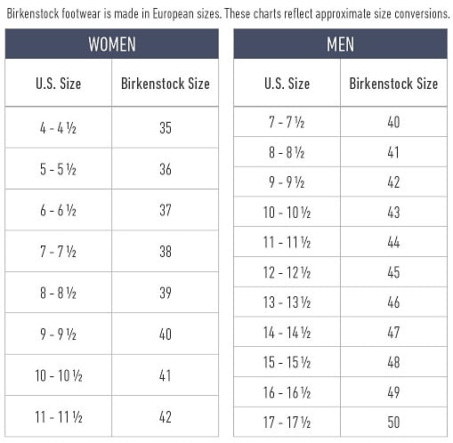 - Birkenstock sandals sizing