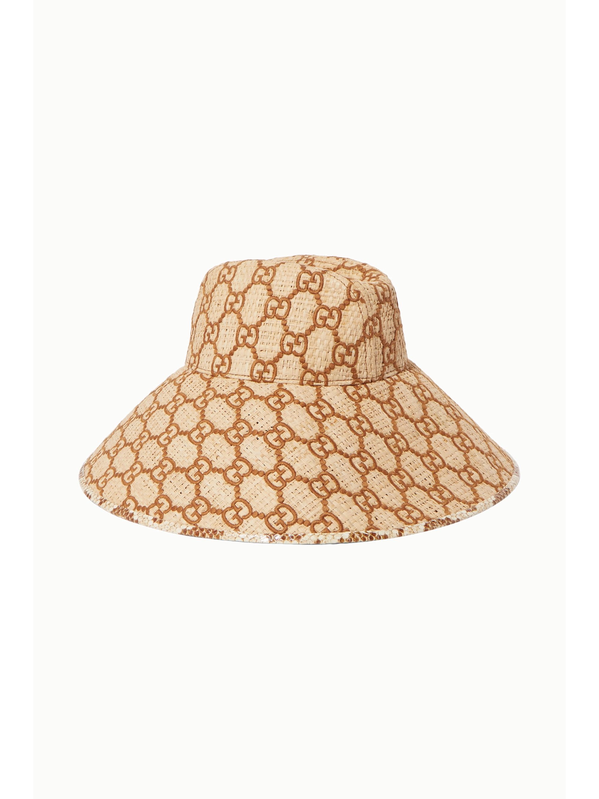 Gucci straw sun hat Clearance, Ivory Watersnake-trimmed embroidered Clearance