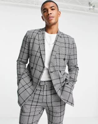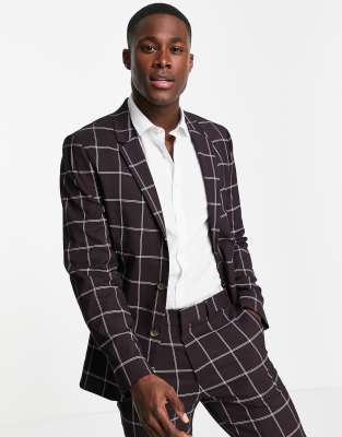 Skinny fit windowpane check blazer Clearance, Men's Windowpane Check Skinny Fit Suit Clearance