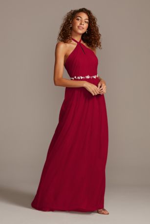 - High neck burgundy bridesmaid dress clearance