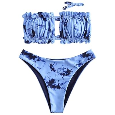 - Shopping Zaful women's strapless ribbed tie back ruffle cutout bandeau bikini set swimsuit
