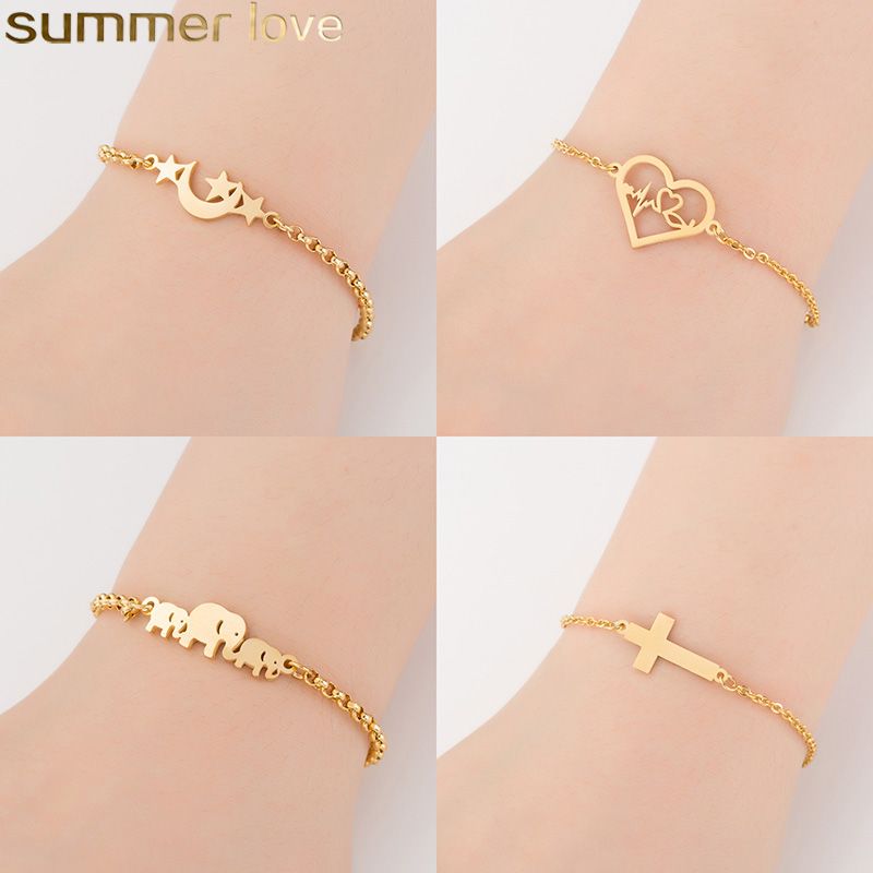 Breslate for girl gold Clearance, Gold Bracelet Charms Chain Link Bangles Clearance