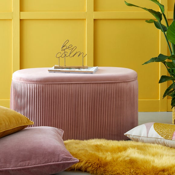 Dunelm velvet ottoman Clearance, Eloise Velvet Pleated Ottoman | Dunelm Clearance