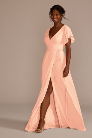 F20039 david's bridal Clearance, Flutter Sleeve Georgette Bridesmaid Clearance