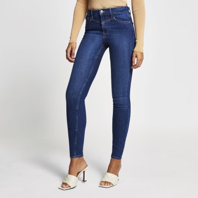 River island womens jeans uk Clearance, Dark blue high rise skinny jeans Clearance