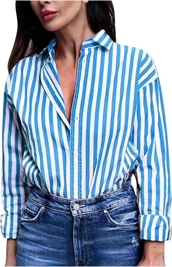 Blue striped blouse womens Clearance, blue striped blouse outfit Clearance
