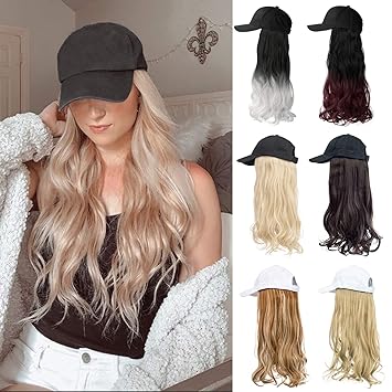 Hat with wig attached Clearance, Baseball Cap with Wig Hair Hats Clearance