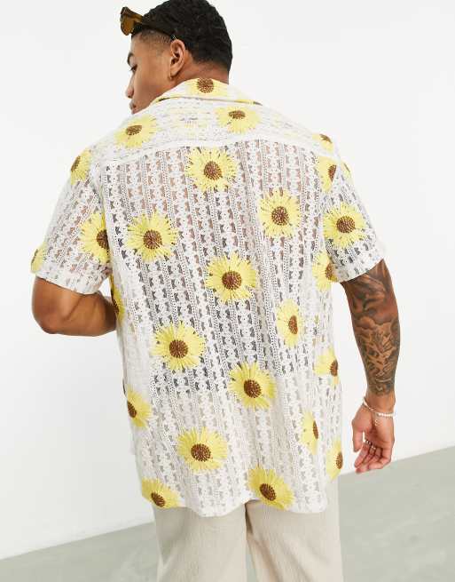 Asos sunflower shirt Clearance, ASOS DESIGN relaxed revere crochet shirt with sunflower embroidery | ASOS Clearance