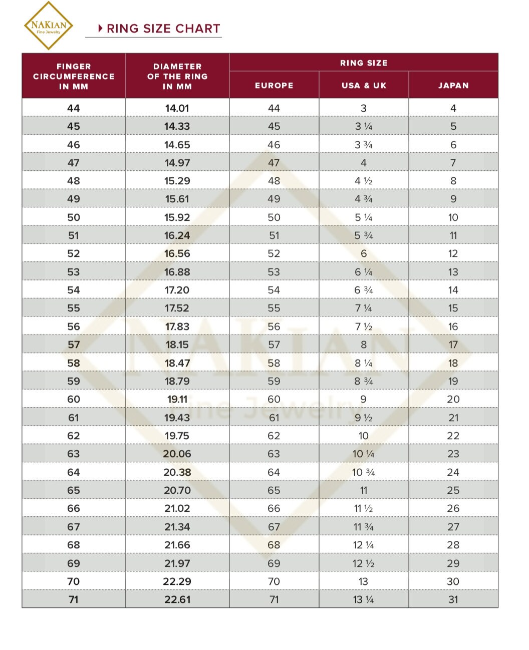 - Cartier ring conversion chart clearance