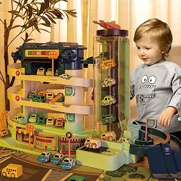 Toy parking garage with elevator Clearance, TEMI BABYHOME Race Car Track Garage-2 Clearance