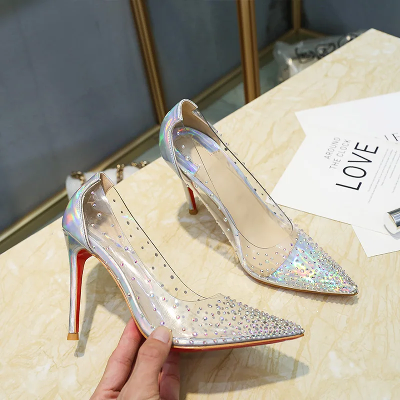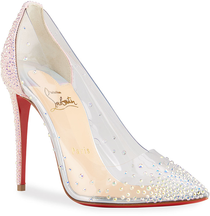 Red bottoms clear Clearance, Christian Louboutin Follies Strass 85 Silver Glitter - Women's Shoes - Size 35.5 Clearance