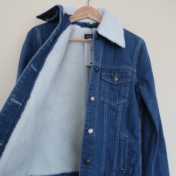 Boohoo sherpa jacket Clearance, Light Wash Denim Jacket W Removable Clearance
