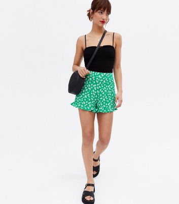 Ditsy shorts Clearance, New Look High Waisted Frill Short in Ditsy Green Print Clearance