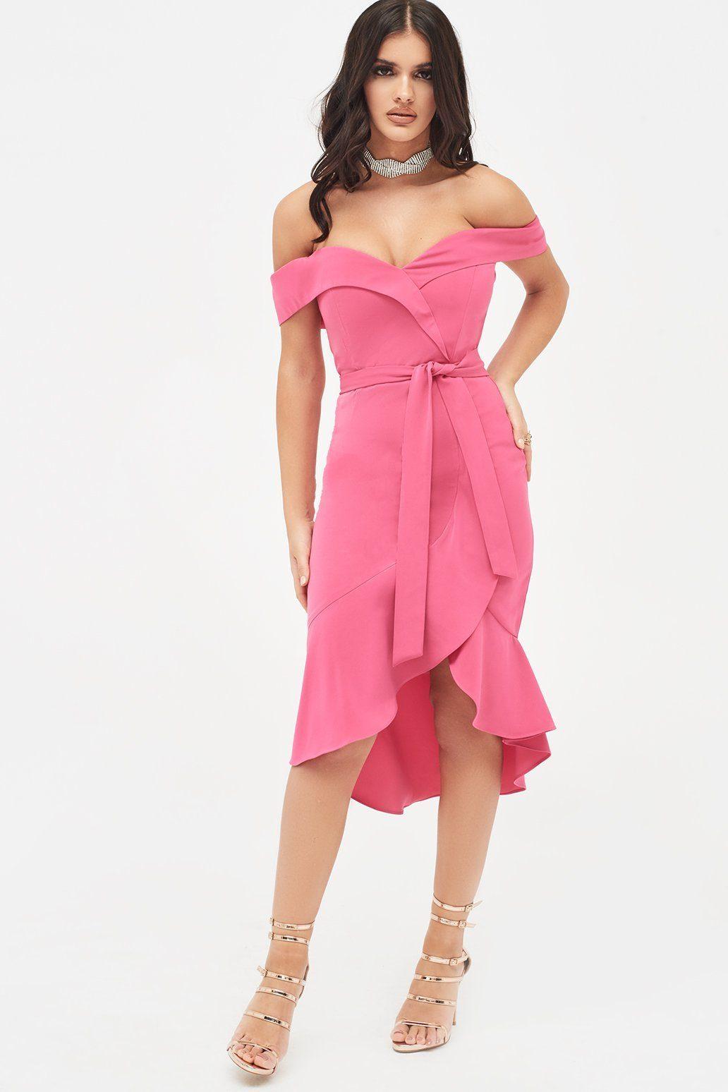 Bardot pink Clearance, Baby Pink Bardot Twist Detail Midi Clearance