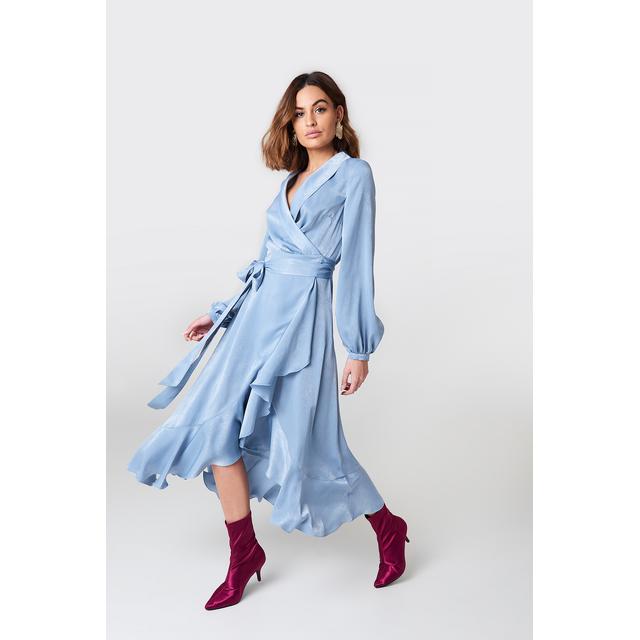 - Wrap over satin frill dress shop