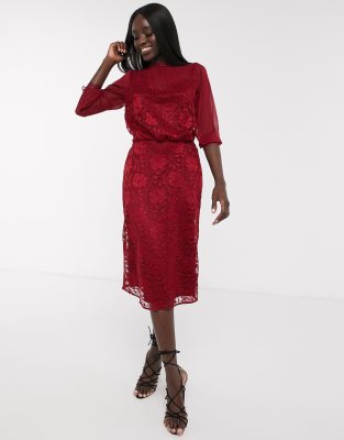 - Burgundy lace midi dress with sleeves clearance