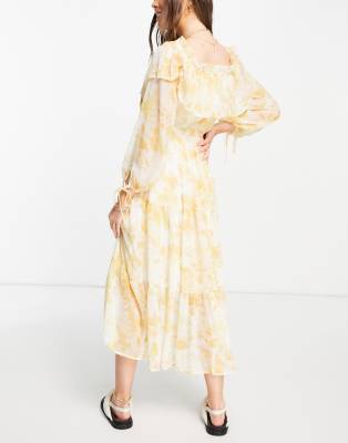 Yellow floral bardot dress Clearance, Yellow Floral Bardot Tiered Maxi Dress Clearance
