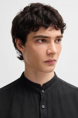 Boss hemd stehkragen Clearance, HUGO - Slim-Fit Hemd aus Leinen mit Stehkragen Clearance