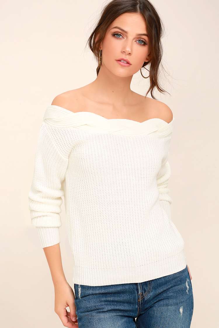 - White open shoulder sweater shop