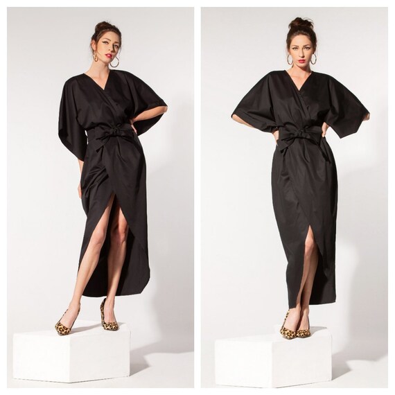 Kimono evening dress Clearance, Kimono Dress Black Maxi Dress Elegant Clearance