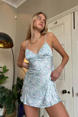 Urban outfitters blue silk dress Clearance, Blue Floral Satin Slip Dress Clearance