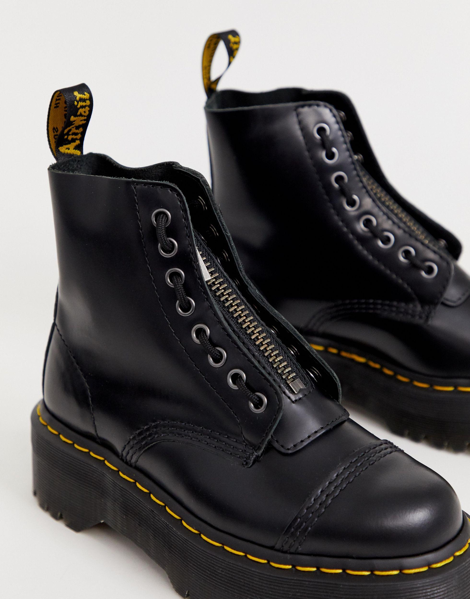 Dr martens botas cremallera Clearance, plataforma plana gruesa en negro cuero Clearance