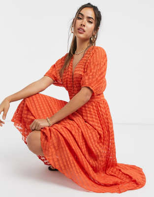 - Red button through midi dress free shipping