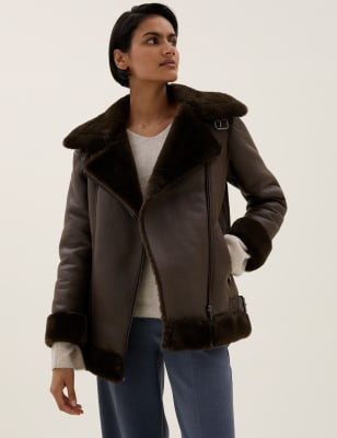 Marks and spencer ladies aviator jacket Clearance, Faux Shearling Borg Lined Aviator Clearance
