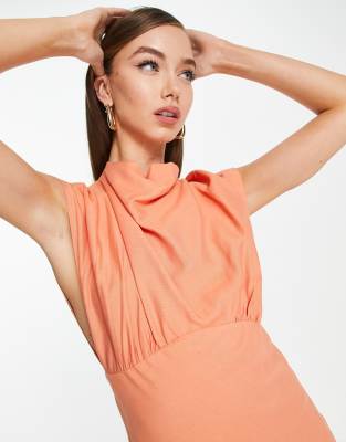 High neck linen dress Clearance, ASOS DESIGN high neck linen midi dress Clearance