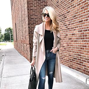 - Open front wool blend coat