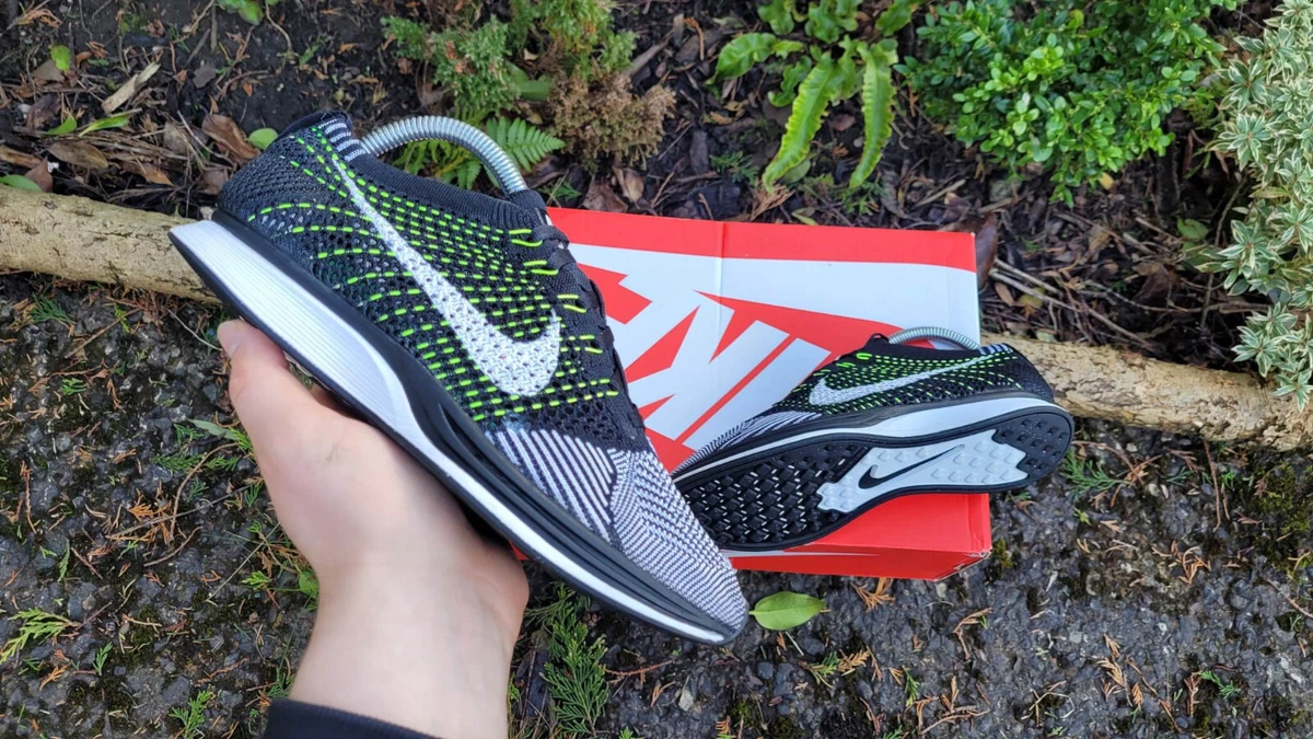- Nike flyknit racer black white volt sold