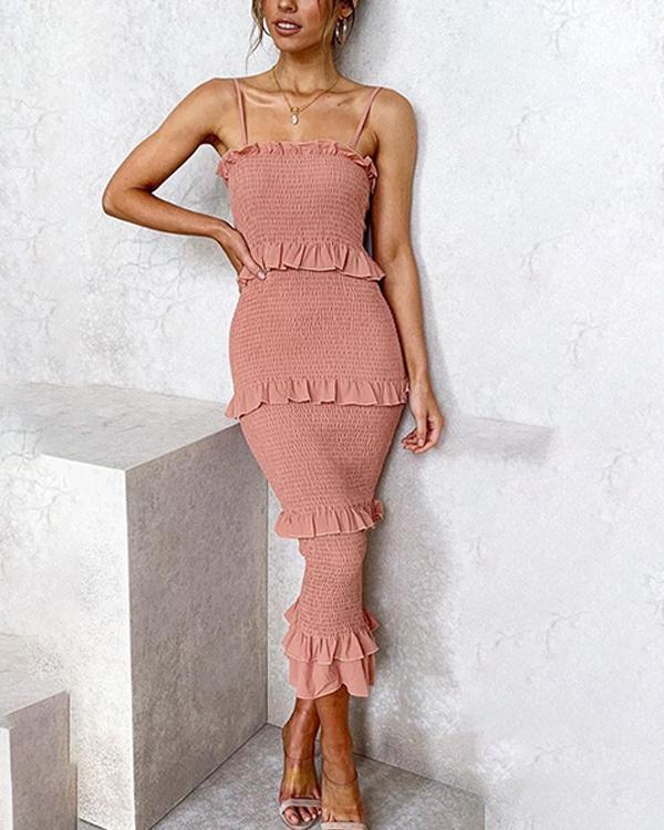 Slim pleated sling cake dress Clearance, Fashion Slim Pleated Sling Cake Midi Clearance