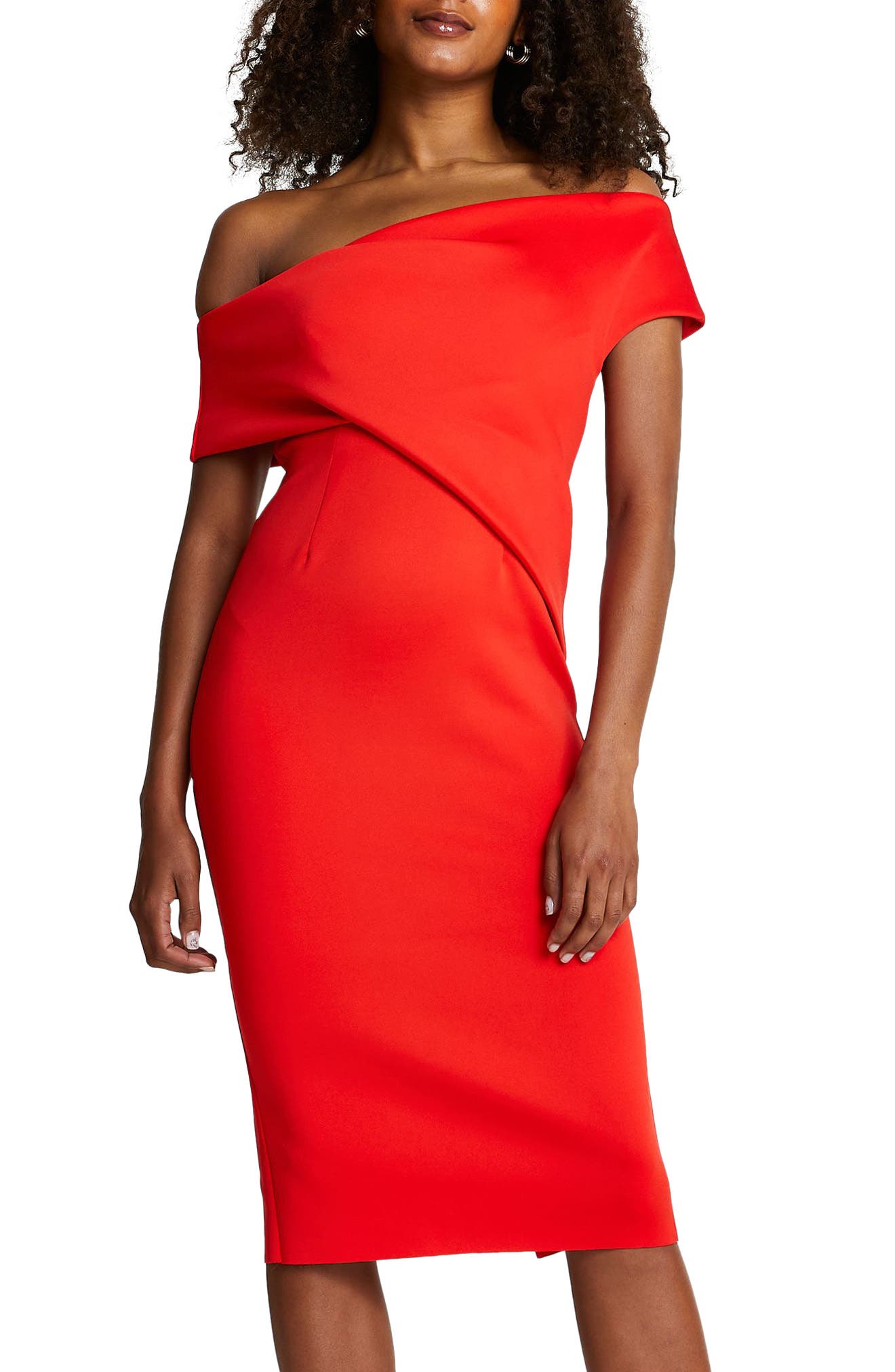 River island off shoulder dress Clearance, Red off the shoulder midi dress | River Clearance